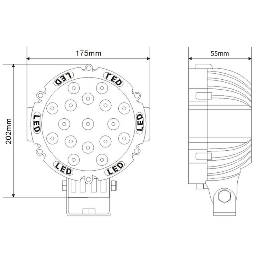Verder is deze verstraler/werklamp voorzien van een slagvaste kunststof lens en een aluminium behuizing met roestvrijstalen montagebeugel. Deze 51 watt ronde verstraler geeft helder wit licht van ca. 4600 lumen en heeft een lichthoek van 30 graden. A-kwaliteit