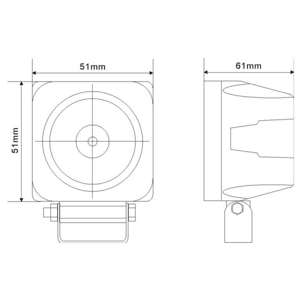 CREE XM-L2 10 watt 10W led breedstraler. Klein vierkant model. Zeer groot in prestaties dankzij de laatste CREE ledtechnologie. Deze CREE 10W breedstralers geven helder wit licht van ca. 1600 lumen in een brede straal van ca. 40 graden. De breedte van deze vierkante breedstraler is slechts 51mm. Geschikt voor 12v en 24v DC. Robuust, schokbestendig en waterdicht (IP67). Montagepunten van deze breedstraler zit aan de onderzijde. Kortom, een vierkante zeer kleine robuuste breedstraler die heel veel licht geeft en veel mogelijkheden heeft. A-kwaliteit.