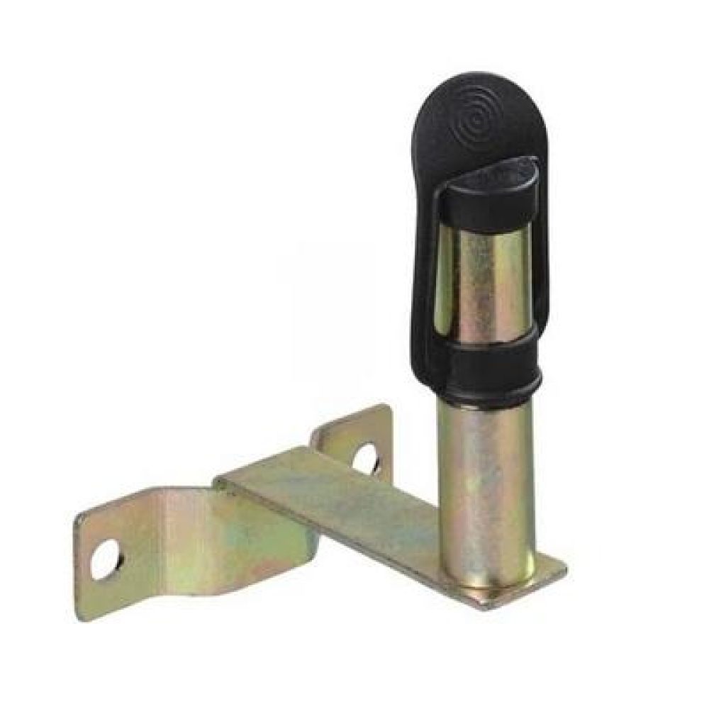 DIN montagesteun. Haakse uitvoering en bestemd voor zwaailampen met steekbevestiging / steekvoet. De DIN steun is gegalvaniseerd en voorzien van aansluitkabels en rubberen afsluitdop.