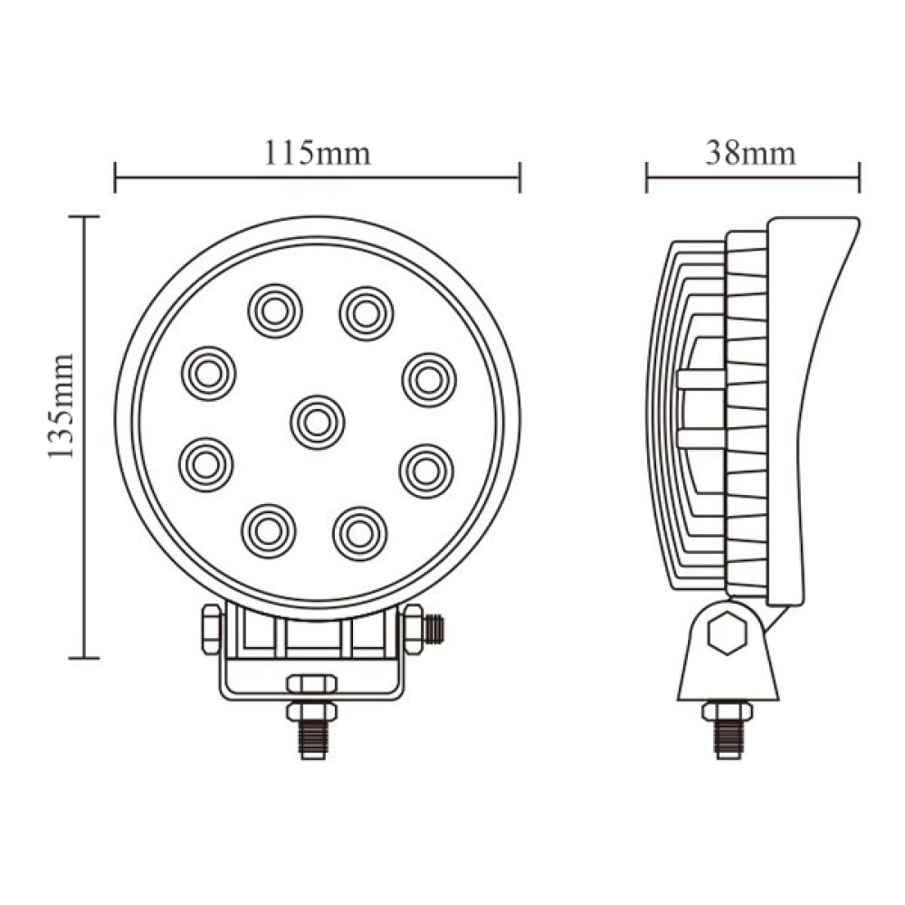 Multi-voltage 27 watt 27w led werklamp, geschikt voor 12v, 24v en 48v DC. Robuust, schokbestendig en stof- en waterdicht, IP67.